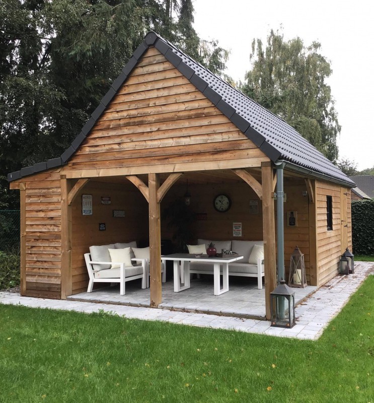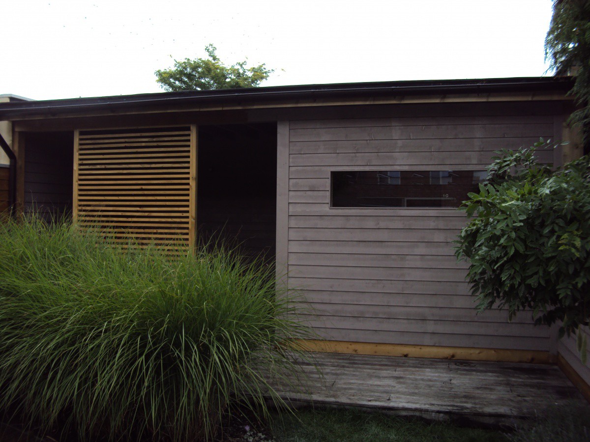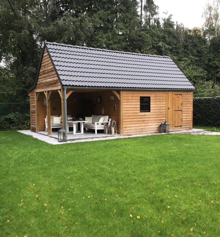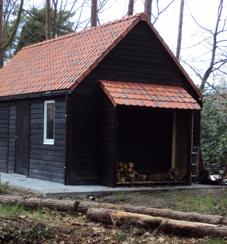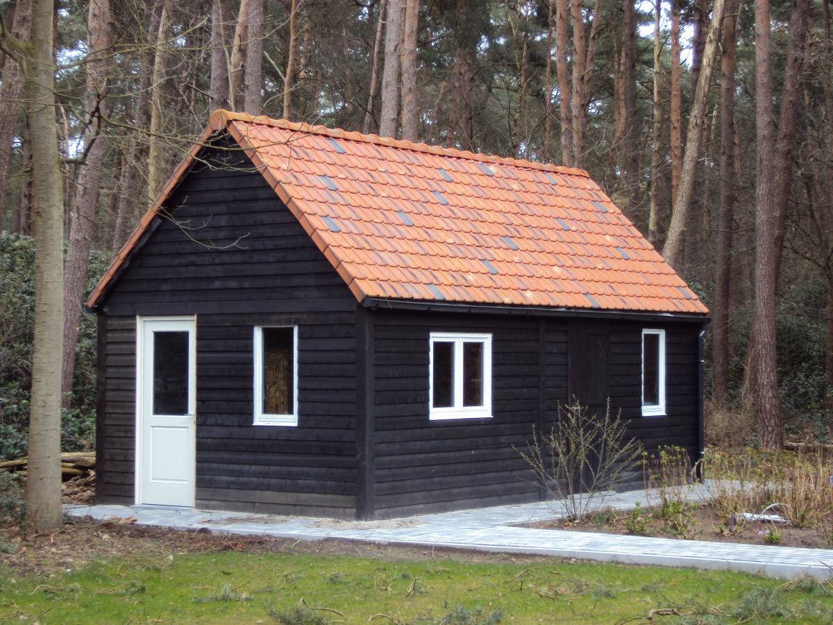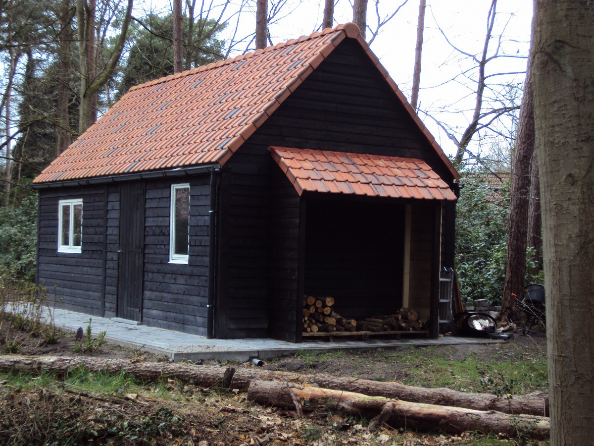 Houten bijgebouwen zoals bergingen of werkruimtes, functioneel en esthetisch uitgevoerd.